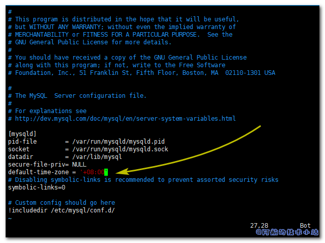 `vim /etc/mysql/mysql.conf.d 或者 vim /etc/mysql/my.cnf`