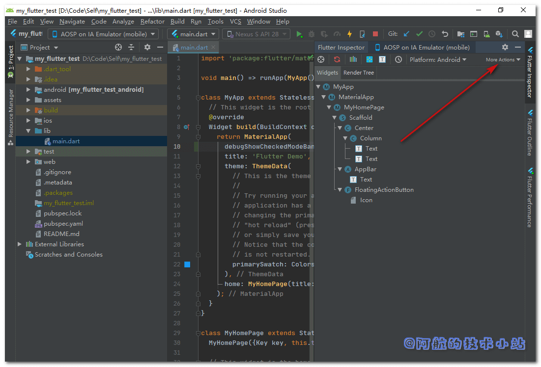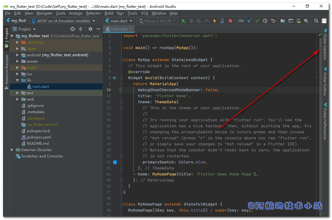 第一步: 点击界面右侧侧边栏的Flutter Inspector, 如图: