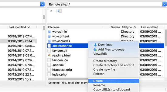 在WordPress进行更新/维护时, 会在目录下创建一个 .maintenance 文件. 当更新/维护结束时, 会自动删除它.