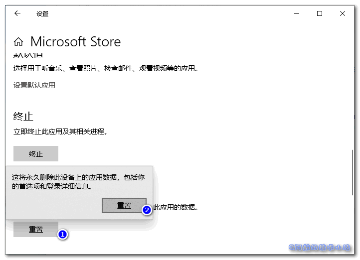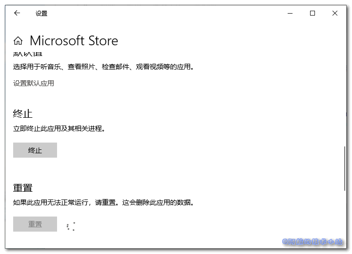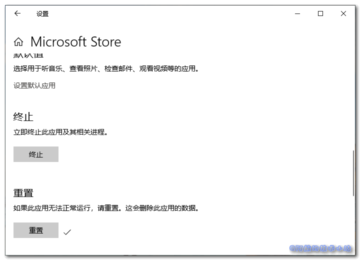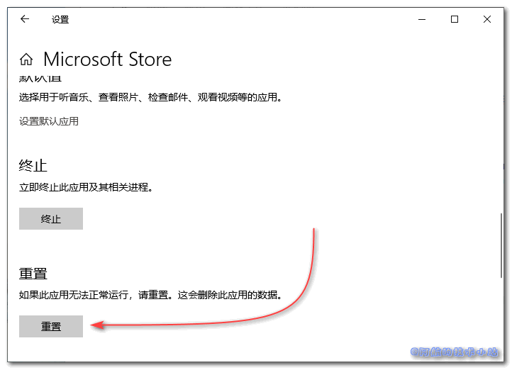 点击进入, 向下拉, 找到Microsoft Store, 单击它, 点击高级选项: